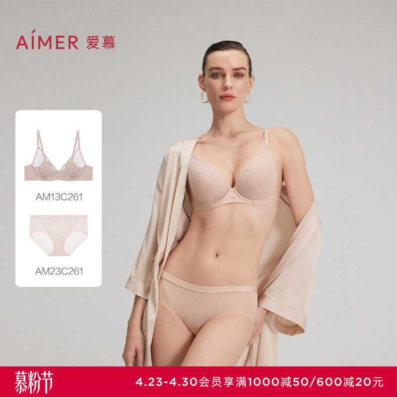 爱慕春夏织锦花瓣内衣女3/4薄衬垫大胸显小文胸内裤套装