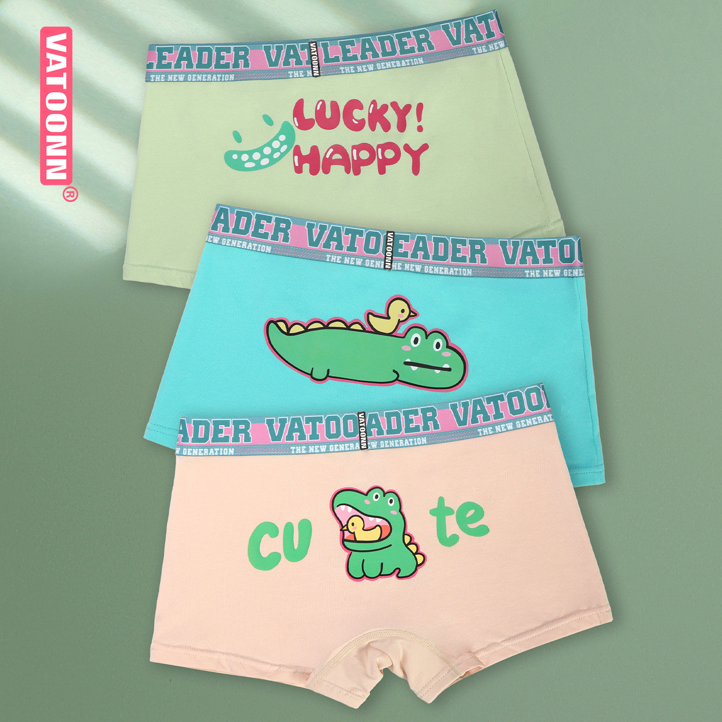 纯棉大码女士平角裤趣味鳄鱼印花宽腰带收腹透气防卷边亲肤内裤