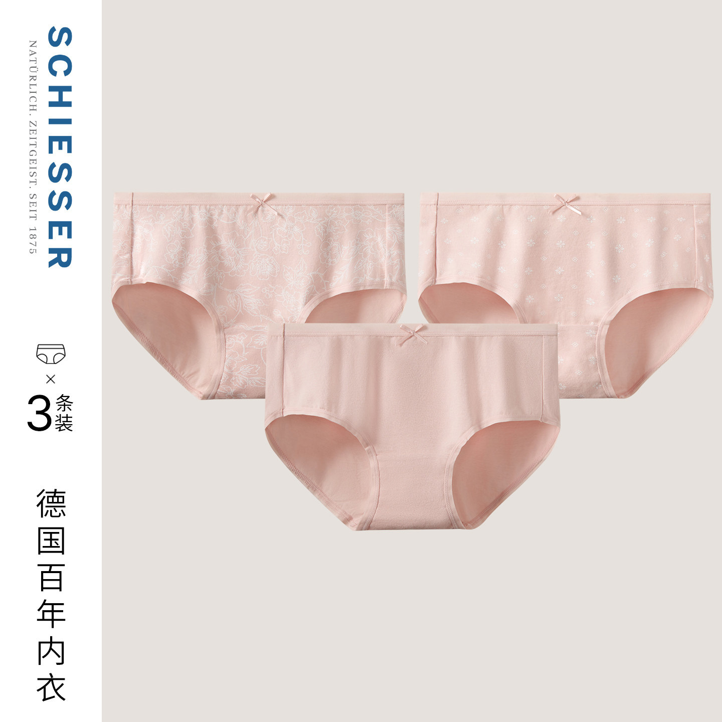 3条装SCHIESSER舒雅26春夏新品女士棉氨印花纯棉底裆透气平角内裤