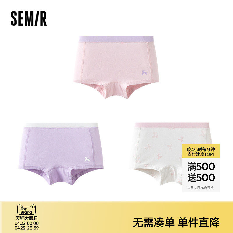 森马儿童内裤2024年新款抑菌四角裤柔软弹力平角裤女童短裤3条装