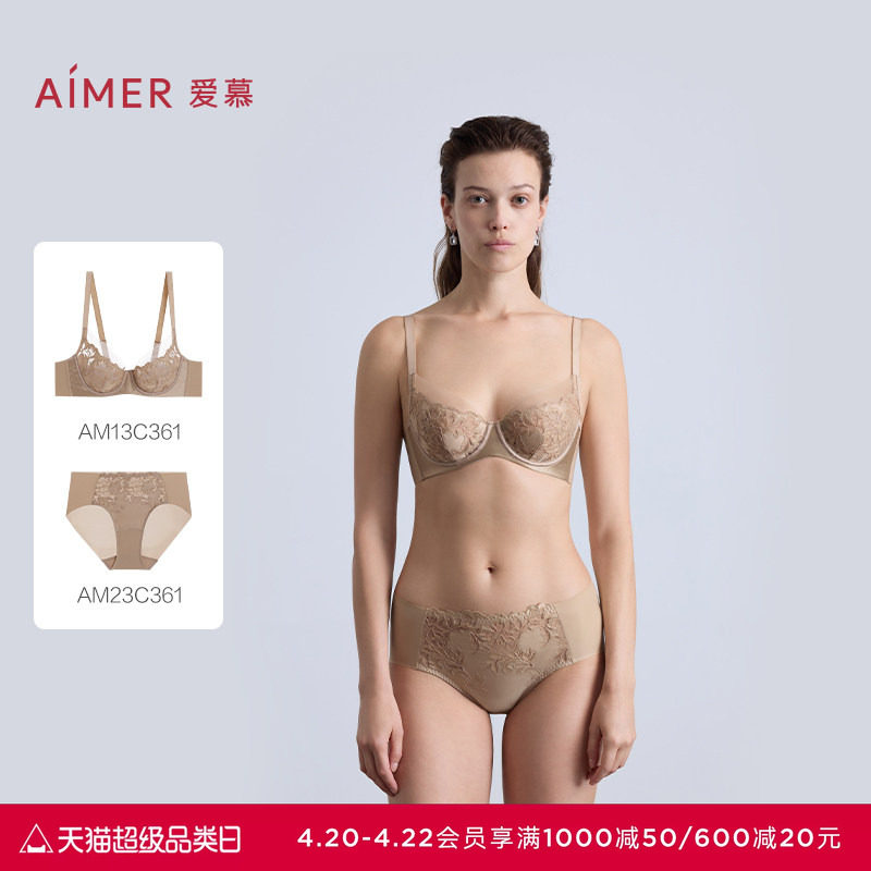 爱慕观棠内衣女4/4薄杯大胸显小性感蕾丝文胸内裤套装