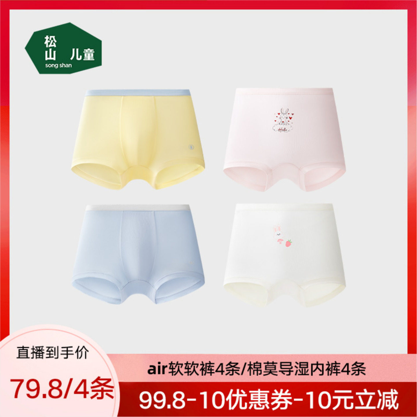 松山棉店儿童男童四角裤女童air莫代尔平角裤/棉莫内裤4条26春夏