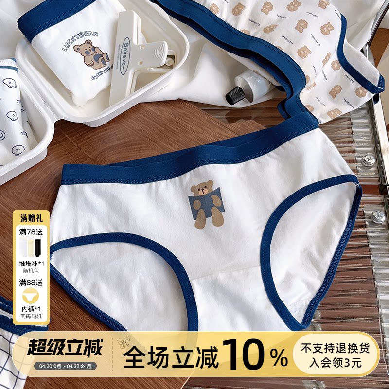 冷酷熊熊!原创少女可爱白色内裤纯棉学生秋季薄款透气全棉裆抗菌