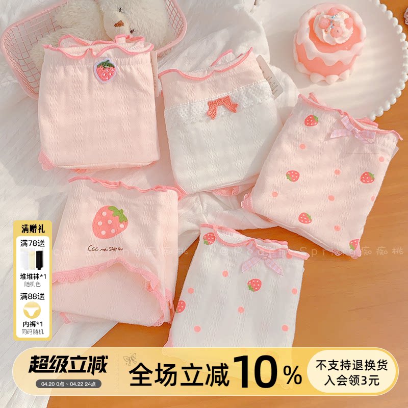 草莓啵啵~可爱粉色纯棉内裤女加长裆学生甜美少女三角裤A类抗菌裆