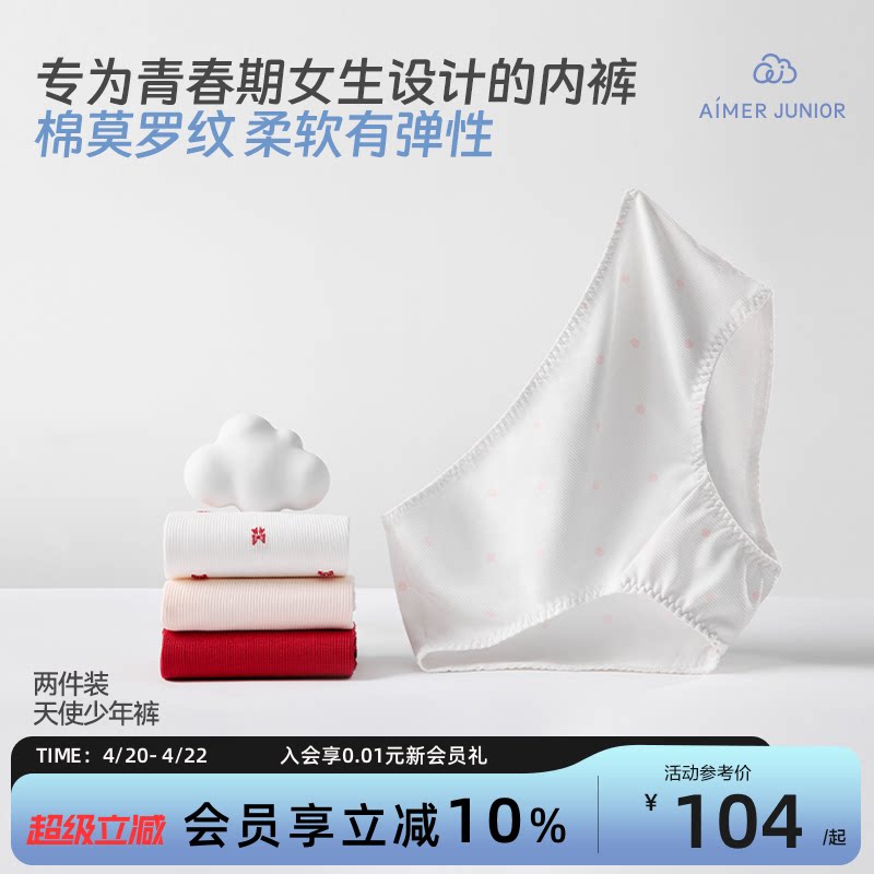 爱慕少女平角内裤2条装A类初高中学生发育期3A抗菌内裤