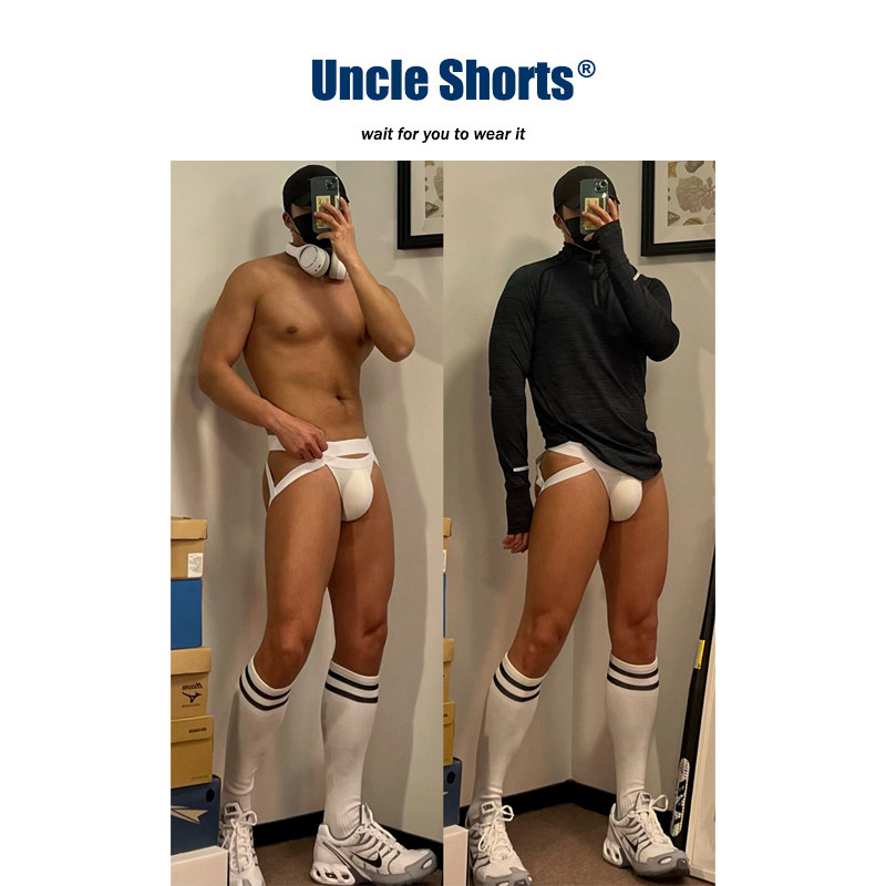 Uncle Shorts性感白色双丁丁字裤男生束缚带镂空透气棉质三角内裤