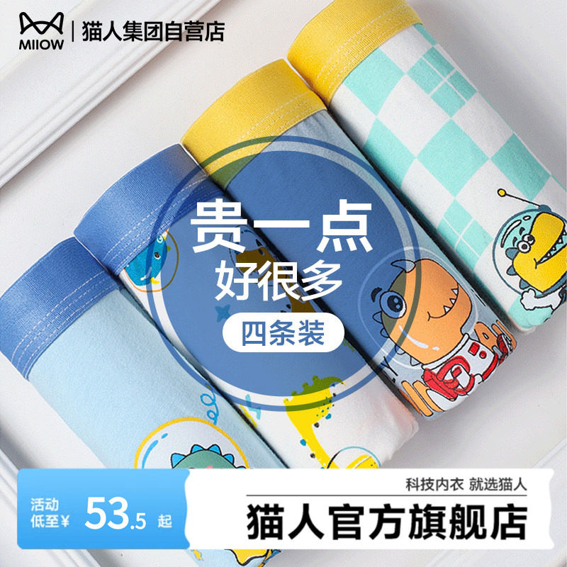 【明星推荐】猫人4条装儿童男童纯棉抑菌透气柔软裤四角裤内裤