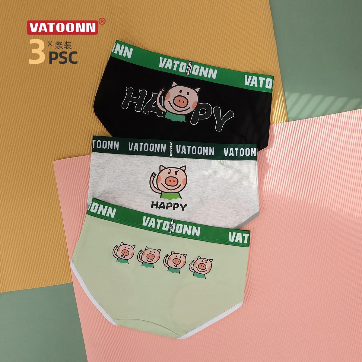 3条装女三角内裤纯棉中腰抑菌内裆大码高弹收腹透气卡通个性萌猪