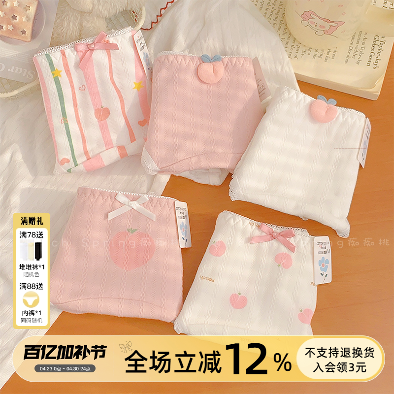 桃汽满满!内裤女纯棉加长加宽裆7A抗菌2026春夏少女全棉a类中腰