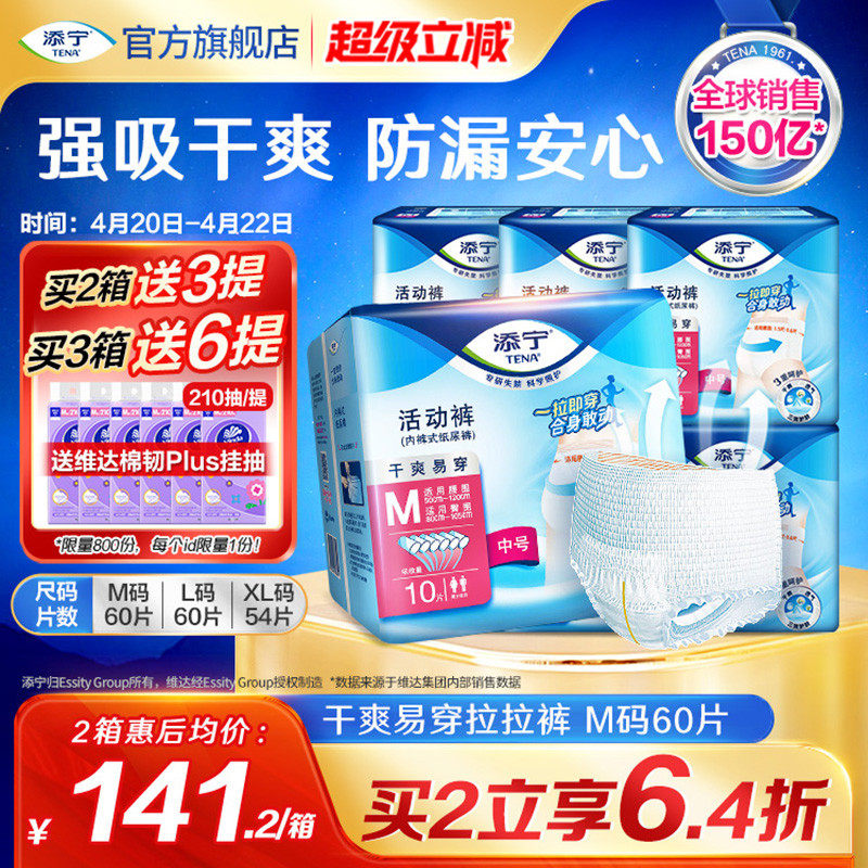 TENA/添宁成人拉拉裤活动裤男女老人用尿不湿内裤型纸尿裤M码60片