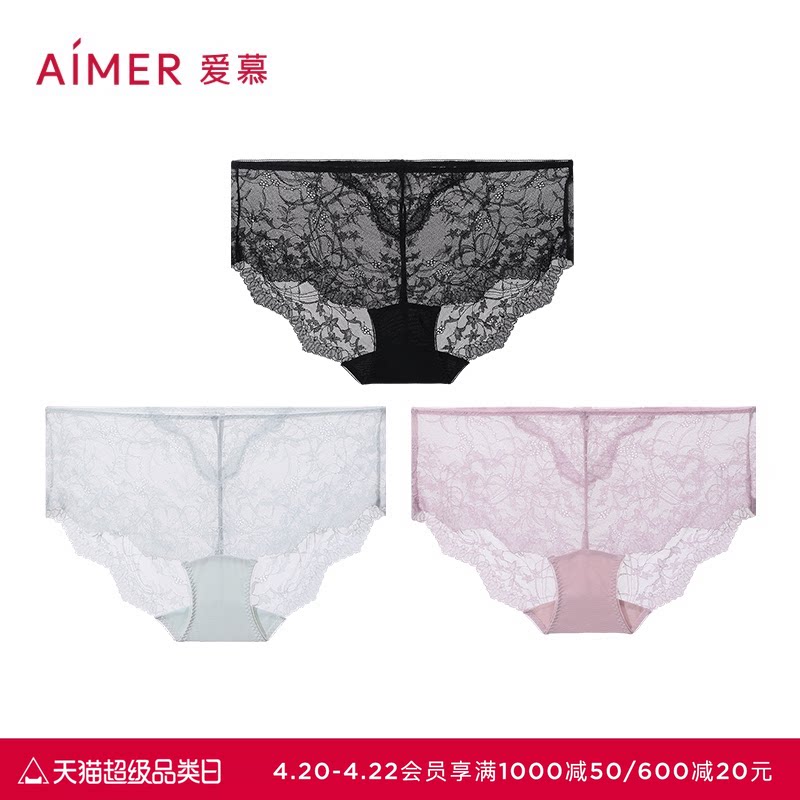 【3件包】爱慕内裤女花的藤蔓棉质底裆性感蕾丝中腰平角裤
