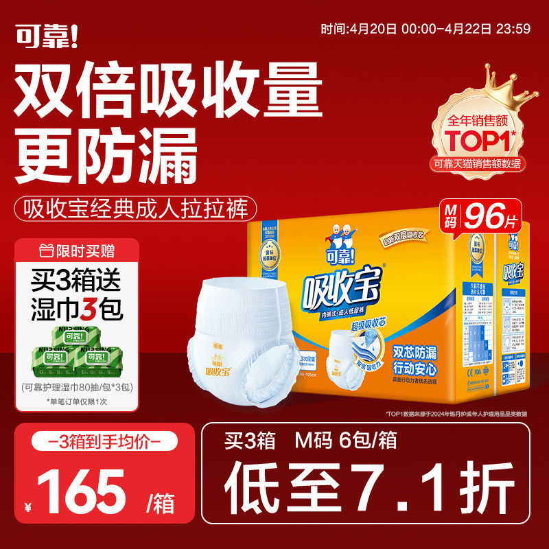 可靠吸收宝成人拉拉裤M码老年人专用尿不湿内裤型纸尿裤男女通用