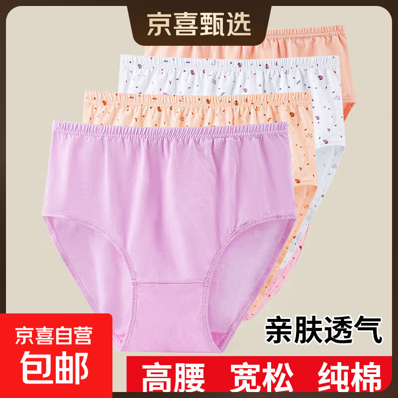 中老年平角纯棉内裤女高腰加大码宽松妈妈全棉短裤头老人透气底裤
