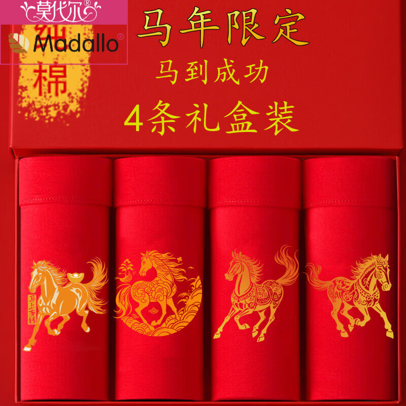 莫代尔男士内裤红色本命年纯棉属马年中国风结婚红裤头平四角裤衩短 【礼盒装】马到成功-组合1 4条 2XL 【建议体重115-140斤】
