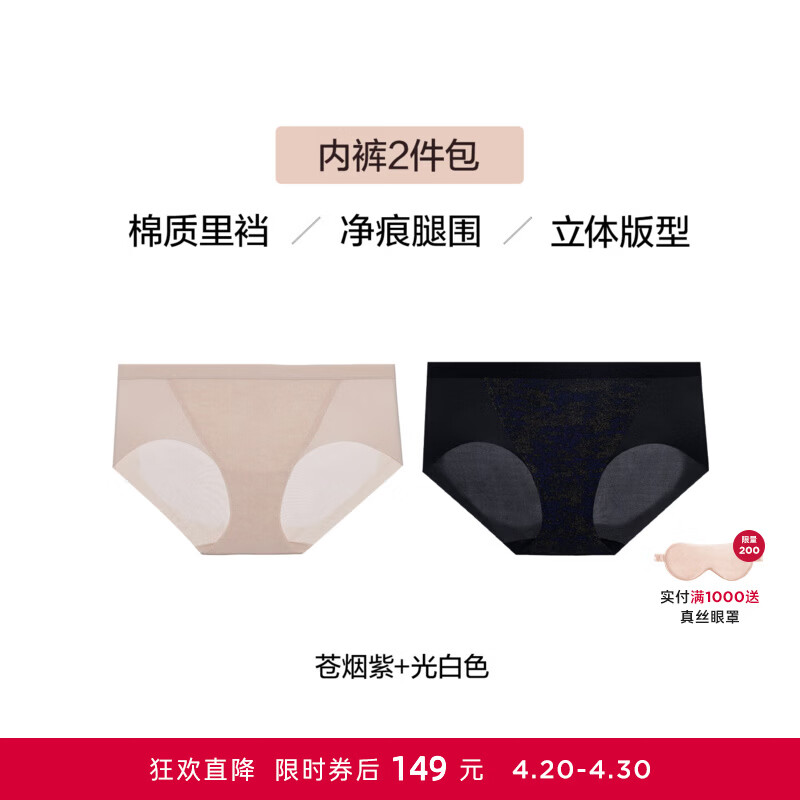 爱慕(Aimer)【2件包】爱慕织锦内裤女棉质裆净痕腿围中腰平角裤 鎏金+星夜 1条 S 160
