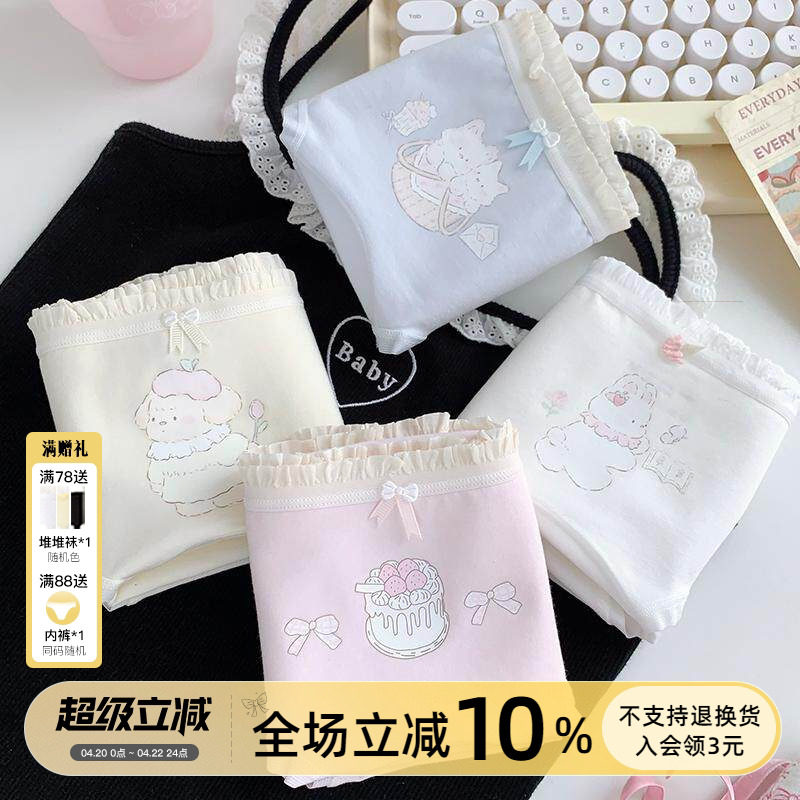 莫妮朵碎花蝴蝶结少女内裤全裤10A抑菌加长纯棉裆中腰大码三角裤