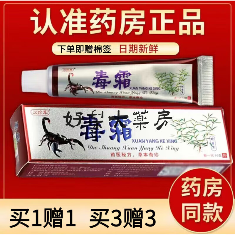 【药房直售】汉珍草毒霜癣痒草本乳膏16g/支 皮肤外用软膏 买1赠1实发2支+棉签