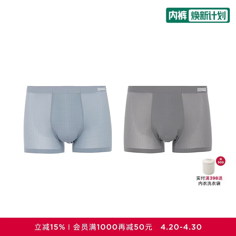 BODYWILD男士内裤【2件装】凉感网眼平角内裤ZBN23CV1-3XL