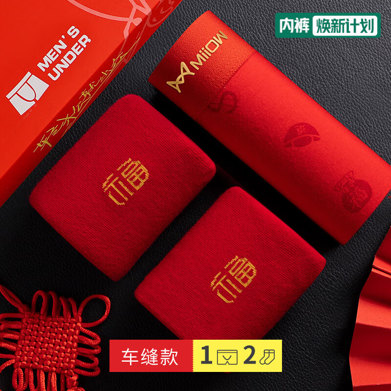 爱慕先生【红礼盒】本命年送礼牛奶系含氨基酸蛋白3A抗菌红内裤2条红袜1双 大红77G 2条 L 170
