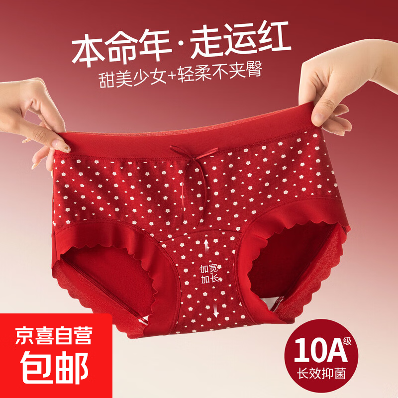 本命年红色大码内裤女2026新款a类纯棉中腰底裆透气10A抗菌三角裤 1条装【随机颜色 可留言备注】 2XL 【140-170斤】