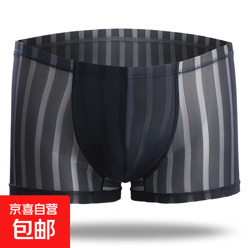 男士内裤男平角裤头夏季透气青年潮薄四角裤衩性感冰丝运动底裤衩 黑色 1条 2XL