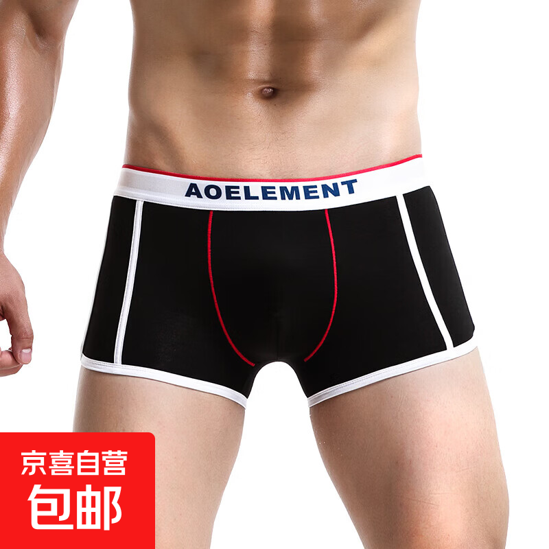 潮牌男士内裤男平角裤纯棉裤衩个性底裤男生透气帅潮流四角短裤头 黑色 1条 2XL