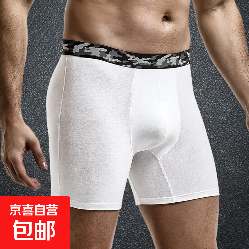 大码男士内裤防磨腿棉质裤衩运动肥佬裤平角裤头跑步透气青年底裤 白色 1条 2XL