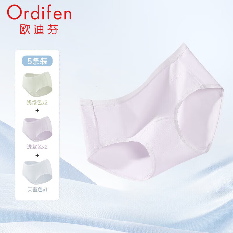 欧迪芬(Ordifen)内裤女95棉高弹亲肤透气女士小裤5条装XKCD01PD 浅绿色*2+浅紫色*2+天蓝色*1 L