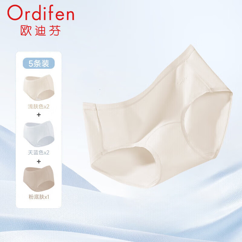 欧迪芬(Ordifen)内裤女95棉高弹亲肤透气女士小裤5条装XKCD01PL 浅肤色*2+天蓝色*2+粉底肤*1 L