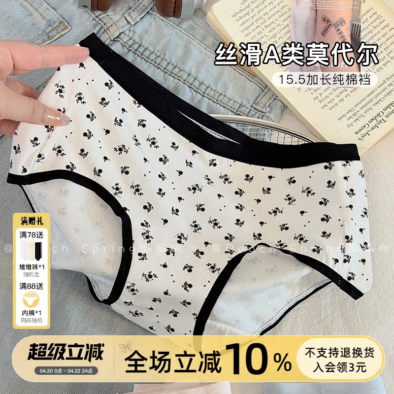 「风铃恋曲」莫代尔包臀少女中腰内裤三角A类棉15cm加长档可裸睡