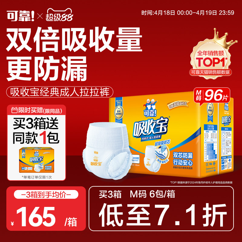 可靠吸收宝成人拉拉裤M码老年人专用尿不湿内裤型纸尿裤男女通用