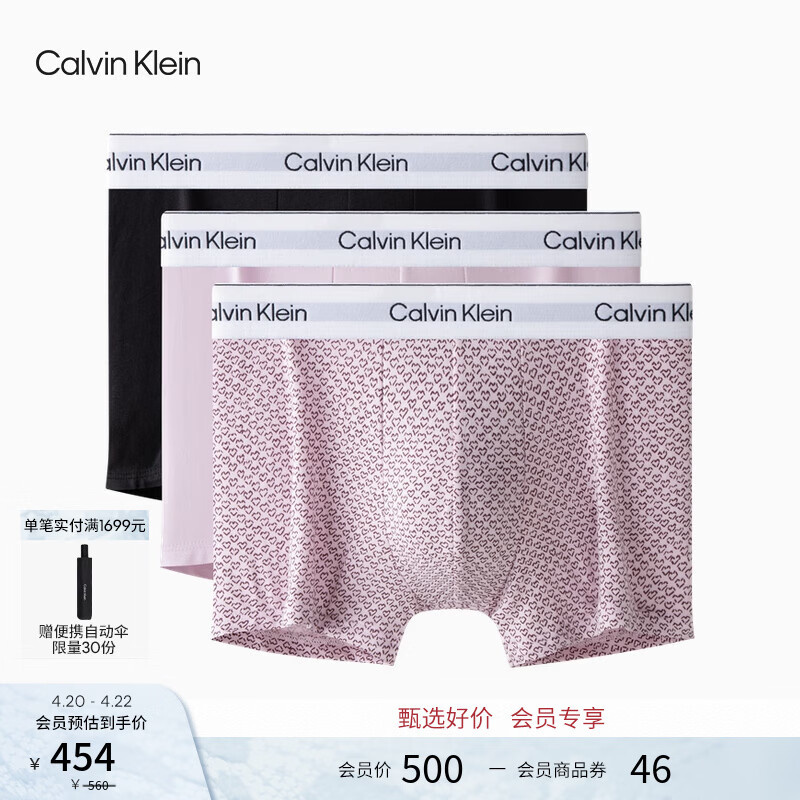 Calvin Klein【明星同款摩登引力带】内衣男三条ck棉质低腰防夹臀平角内裤男 2WX-太空黑/柔粉/心形粉 3条 S