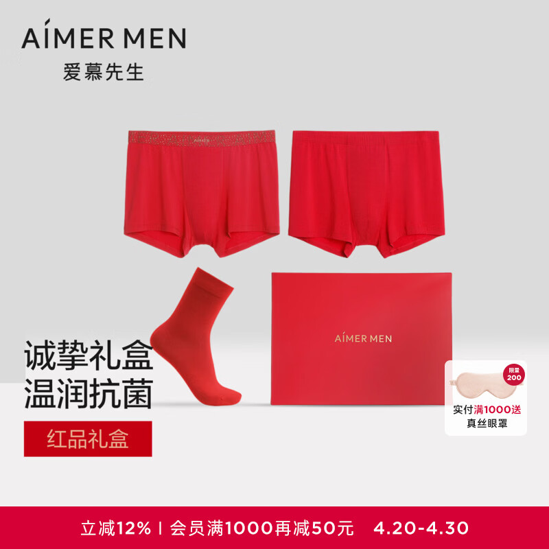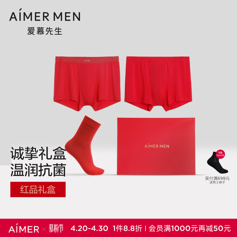 爱慕先生【红礼盒】本命年送礼牛奶系含氨基酸蛋白3A抗菌红内裤2条红袜1双 大红77G 2条 L 170