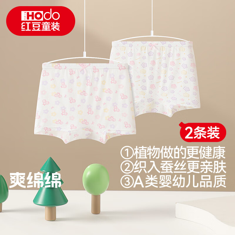 红豆童装平角裤纯棉底裆女学生2条装弹力7A抗菌短裤A类含蚕丝内裤 H5K4110-3 (60支纱织) 2条 120 (建议111-120cm,36-40斤)