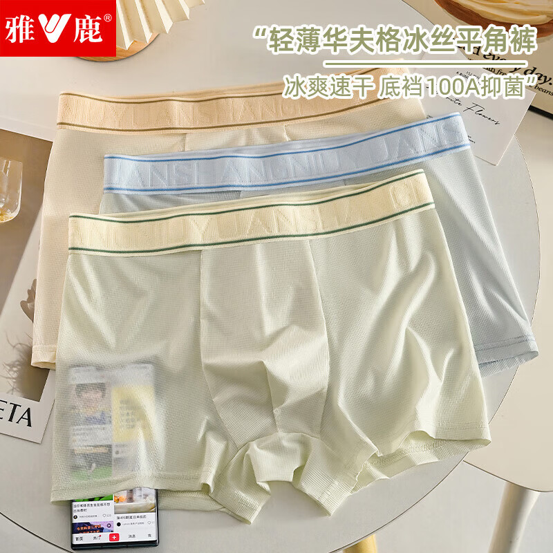 雅鹿冰丝男士内裤无痕男生平角裤大码运动2025年新款四角裤衩 2条装-浅绿+浅蓝 3XL 140-160斤