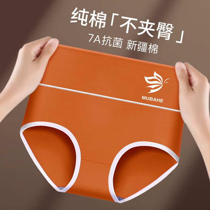 【出口转内销】高腰纯棉内裤女7A石墨烯抗菌内档收腹提臀三角裤 3条-焦糖+肤色+豆沙 2XL (建议125-150斤)