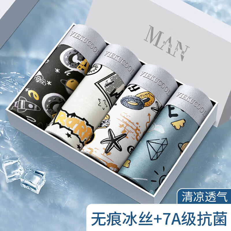 雅鹿冰丝男士内裤无痕抗菌男生平角裤大码运动2025年新款四角裤衩 2条装-浅绿+浅蓝 3XL 140-160斤
