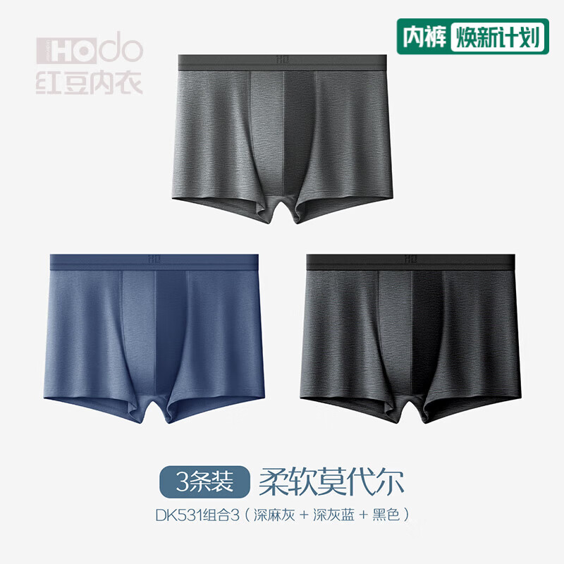 红豆(Hodo)莫代尔内裤男抗菌底裆运动透气大码男士平角裤四季柔软爽滑四角裤 531组合三(莫代尔常规款) 3条 2XL (180)