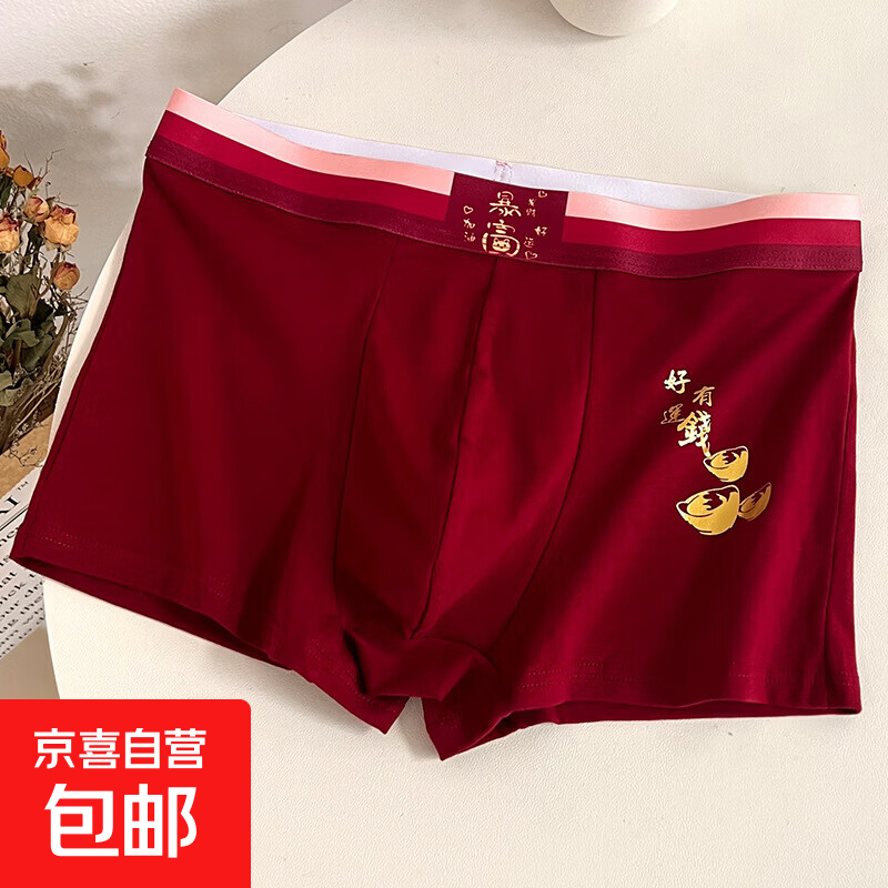 2026本命年男士鸿运纯棉内裤暴富发财婚庆内裤男青年 颜色随机 2条 3XL 【135斤-155斤】