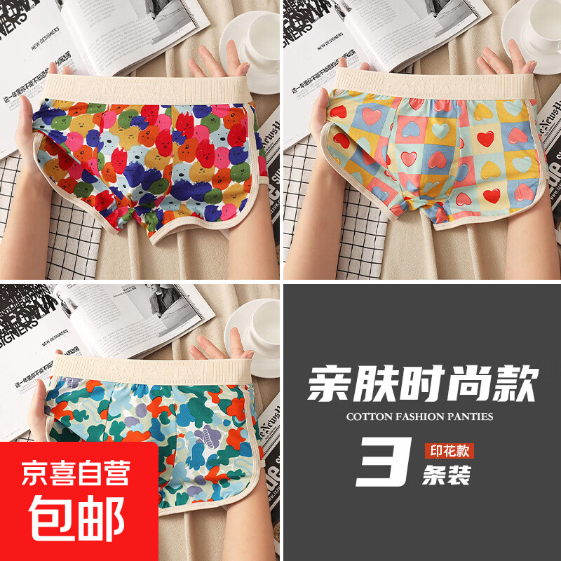 男士内裤男装运动男生四角裤头男款平角裤衩短裤内裤男 迷彩+彩色表情+彩色爱心【装】 3条 2XL 【适合130-150斤】