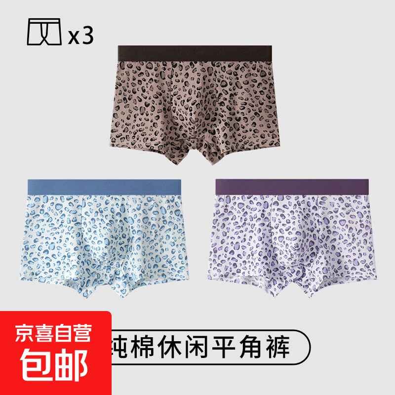 男士棉内裤男士平角裤秋冬新款透气四角裤中腰舒适印花男内裤 酒红(独立装)(3件) 2XL