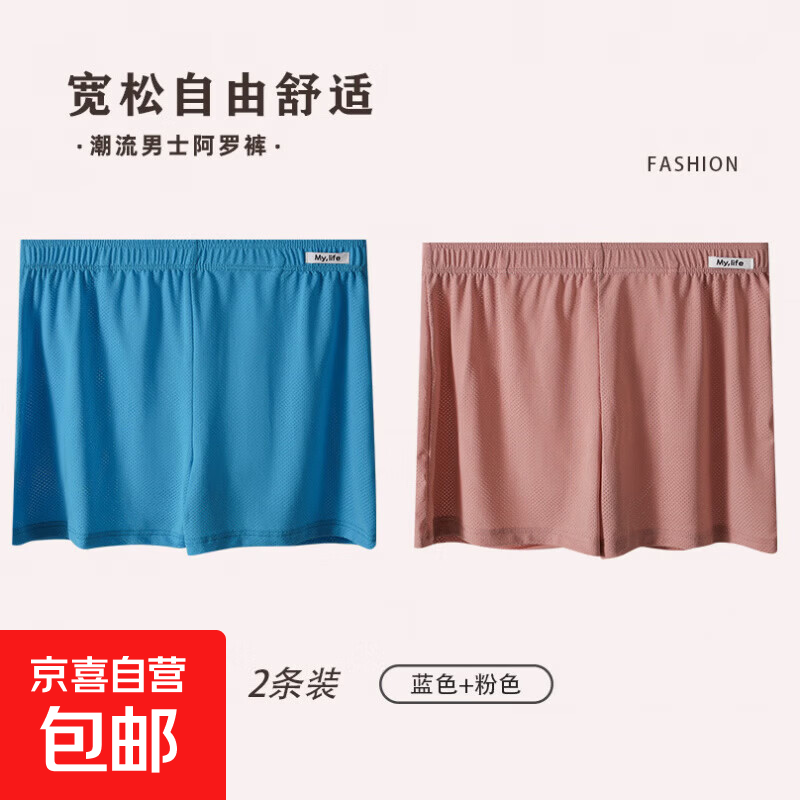 男士内裤冰丝男士阿罗裤男生运动平角裤男款四角裤头短裤内裤 蓝色+粉色【装】 2条 3XL 【适合150-170斤】