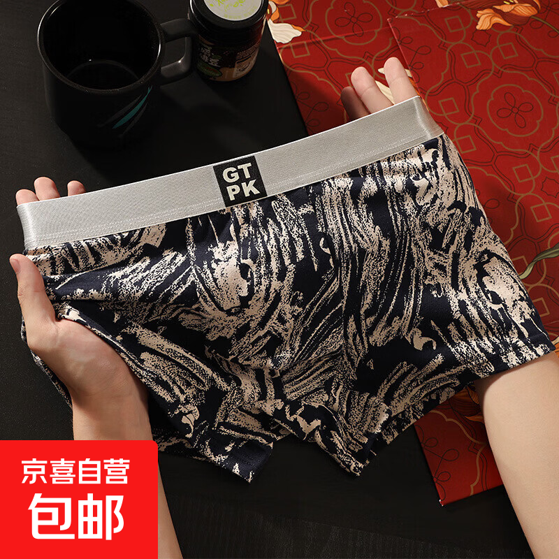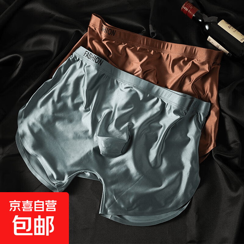 冰丝内裤男式运动平角短裤男款四角裤衩男生裤头男士内裤 梦璃棕+月夜蓝【装】 2条 3XL 【适合145-165斤】