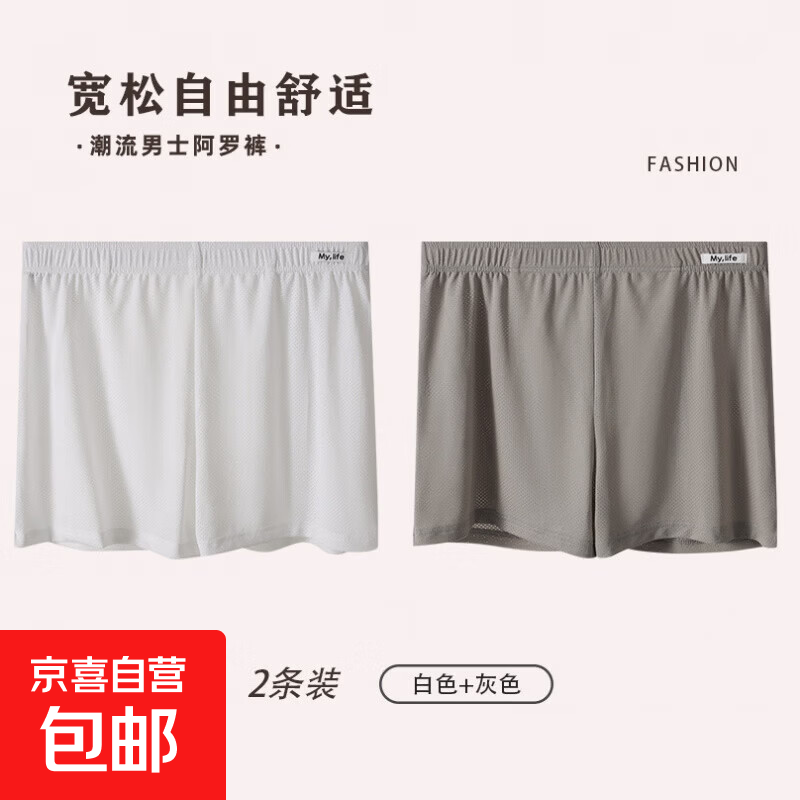 男士内裤冰丝男士阿罗裤男生运动平角裤男款四角裤头短裤内裤 白色+灰色【装】 2条 3XL 【适合150-170斤】