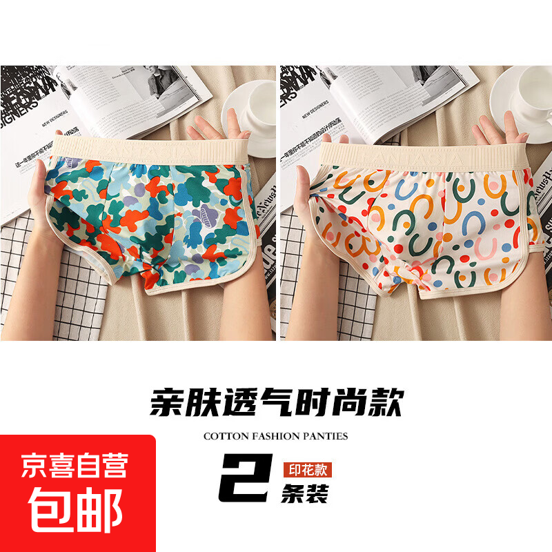 男士内裤男装运动男生四角裤头男款平角裤衩短裤内裤男 迷彩+七彩斑点【装】 2条 3XL 【适合150-170斤】
