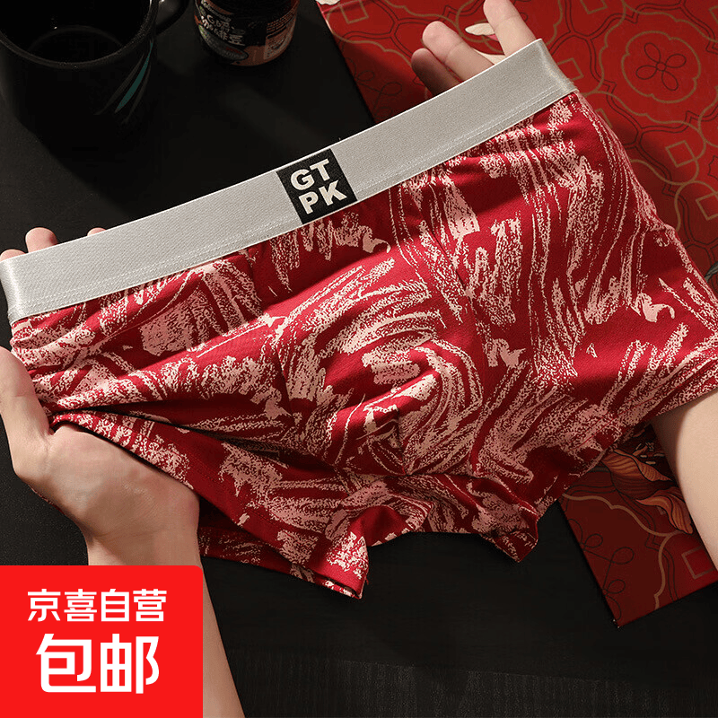 男士内裤男纯棉红内裤本命年龙年送男友四角裤衩平角裤头男生 颜色随机 2条 3XL 【155斤-180斤】