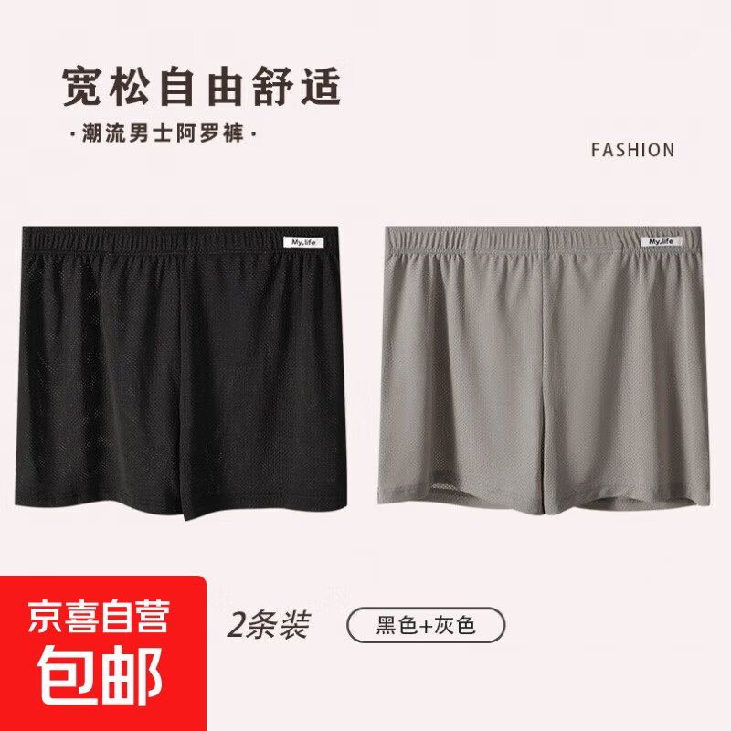 男士内裤冰丝男士阿罗裤男生运动平角裤男款四角裤头短裤内裤 黑色+灰色【装】 2条 3XL 【适合150-170斤】