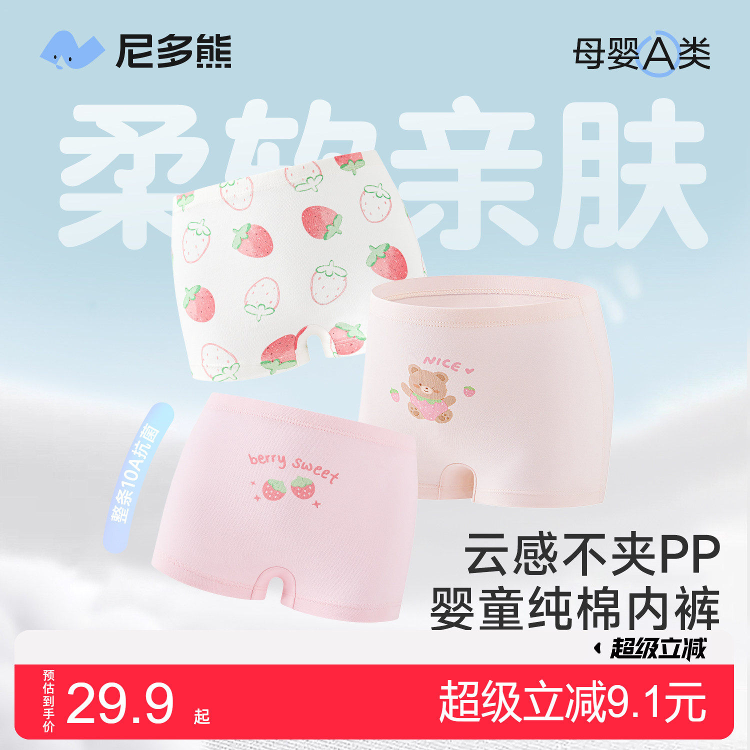尼多熊26宝宝内裤儿童纯棉内裤男女孩婴儿四角裤中小童平角裤幼儿