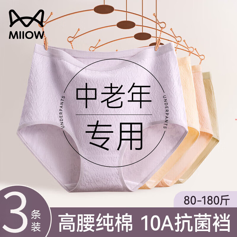 猫人2026年新款全棉内裤女士大码妈妈宽松内裤中老年100棉抗菌裆内裤 粉色+绿色+黄色 3条 2XL (适合155-18斤)