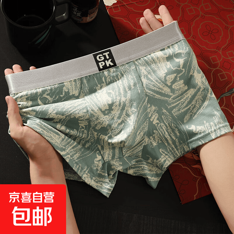 男士棉内裤男士平角裤秋冬新款透气四角裤中腰舒适印花男内裤 灰绿(独立装)(3件) 2XL